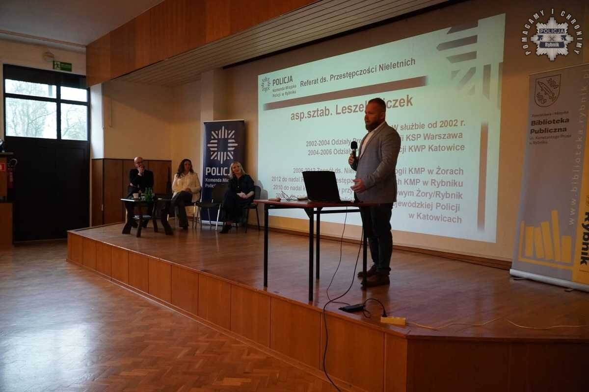 Za nami debata „Wyłącz hejt – Włącz szacunek”. Wydarzenie odbyło się w auli Powiatowej i Miejskiej Biblioteki Publicznej im. Konstantego Prusa w Rybniku. Zgromadzonych gości przywitał młodszy aspirant Lesław Mandrela, który zwrócił uwagę na główne aspekty mowy nienawiści i hejtu wśród młodzieży i dzieci. W spotkaniu uczestniczyli dyrektorzy placówek oświatowych, pedagodzy, psycholodzy placówek oświaty oraz przedstawiciele instytucji kultury.