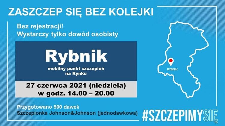W niedzielę, 27 czerwca, od 14.00 do 20.00 na rybnickim rynku działać będzie Mobilny Punkt Szczepień. Na wszystkich chętnych czekać będzie 500 jednodawkowych szczepionek Johnson&Johnson.