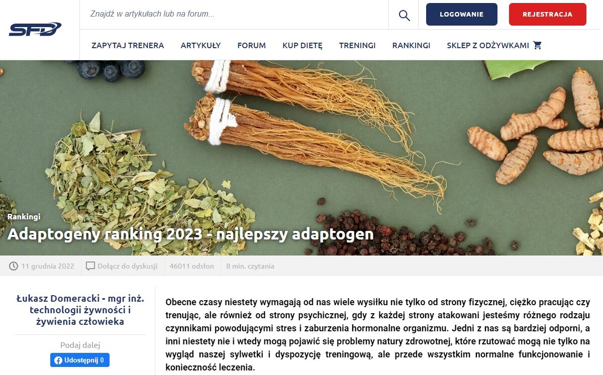 Chcesz dowiedzieć się czegoś więcej na temat adaptogenów oraz innych wartościowych preparatów i związków, które mogą być przydatne w codziennym życiu? Skorzystaj z darmowej wiedzy zgromadzonej na stronie SFD, zarówno na samej stronie, jak i na forum dla użytkowników, gdzie głos zabierają także prawdziwi eksperci! Wystarczy przejść pod adres: https://www.sfd.pl/