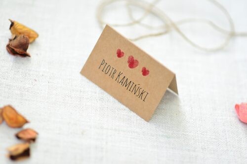 W sali weselnej udekorowanej w stylu boho lub romantycznym pięknie będą prezentować się winietki na stół bogato zdobione kwiecistymi wzorami, lub złotą obramówką. Niezwykle efektownie wyglądają również etykietki z nadrukiem rustykalnego bukietu bądź serduszek. Najlepiej zamówić etykietki w komplecie z zaproszeniami.